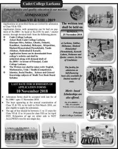Cadet College Larkana 7th 8th Classes Admissions 2019 Started
