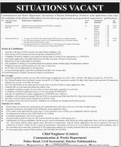 ETEA Recruitment of Sub Engineer Civil and Draftsman Posts in Communication and Works Department KPK – 2019 Test Syllabus MCQs Sample Papers Latest Advertisement 2021 Jobs of Civil Engineer announced
