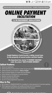 Online e-Payment Facility to Punjab Employees Social Security Workers January 11, 2019 by adminOnline e-Payment Facility to Punjab Employees Social Security Workers