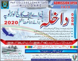 PAF College Lower Topa 8th Class Admissions 2020 Schedule July 19, 2019 by adminPAF College Lower Topa 8th Class Admissions 2020 Schedule 8th Class Admission Entry Test Schedule PAF College Lower Topa 2020 Entry Test Syllabus MCQs Papers Past Sample Papers Available on our Website