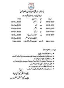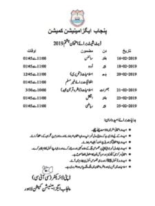 PEC 5th 8th Grade Annual Examination 2019 Date Sheet