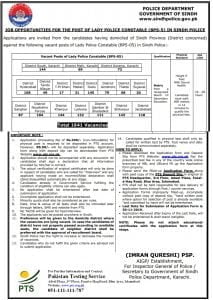 PTS Lady Police Constable Sindh Police Jobs Test Syllabus MCQs November 27, 2019 by adminPTS Lady Police Constable Sindh Police Jobs Test Syllabus MCQs Lady Constable Police Test Criteria Test Syllabus Sample Papers Past Papers How to Prepare Test of Pakistan Testing Services PTS