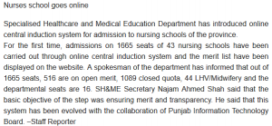 PITB introduced online admission system for the candidates who want to take admission in nursing schools colleges